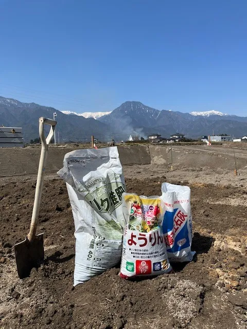 土曜日は暖かく、晴れ渡ったので肥料を近くの綿半で購入して土づくりをしてシャインマスカットの