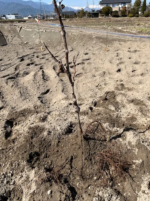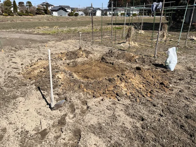 我家の畑に去年植えたナガノパープルとシャインマスカットの苗を移植してぶどう棚を作ります。