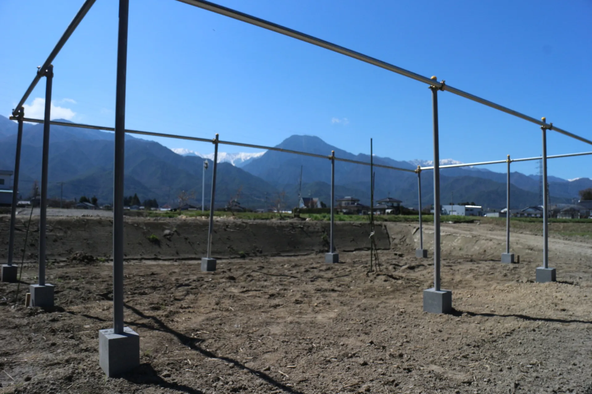 去年苗を植えたシャインマスカットとナガノパープルの棚を作り始めました。JAあずみの技術員の方からいぼだけの棚ではもたないといわれたので、今年は真剣に棚を作り始めました。石灰硫黄合剤の消毒もこれから実施します。早生栽培をやりたいので、ケンタッキーグラスの種を蒔き手入れをしていこうと思います。